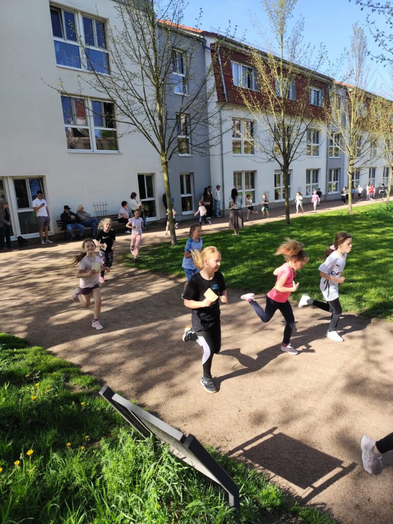 Unser erstes großes Projekt im vergangenen Jahr war der Spendenlauf Ende April 2025. Dieser fand am benachbarten Schlossteich von Schloss Wilhlmsburg statt. Klassenstufenweise rannten die Schüler so viele Runden sie wollten, für jede Runde gab es eine individuelle vereinbarte Spende. So kamen rund 6800 Euro zusammen.